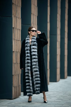 Двустороннее пальто из шерсти мериноса с норковым воротником
