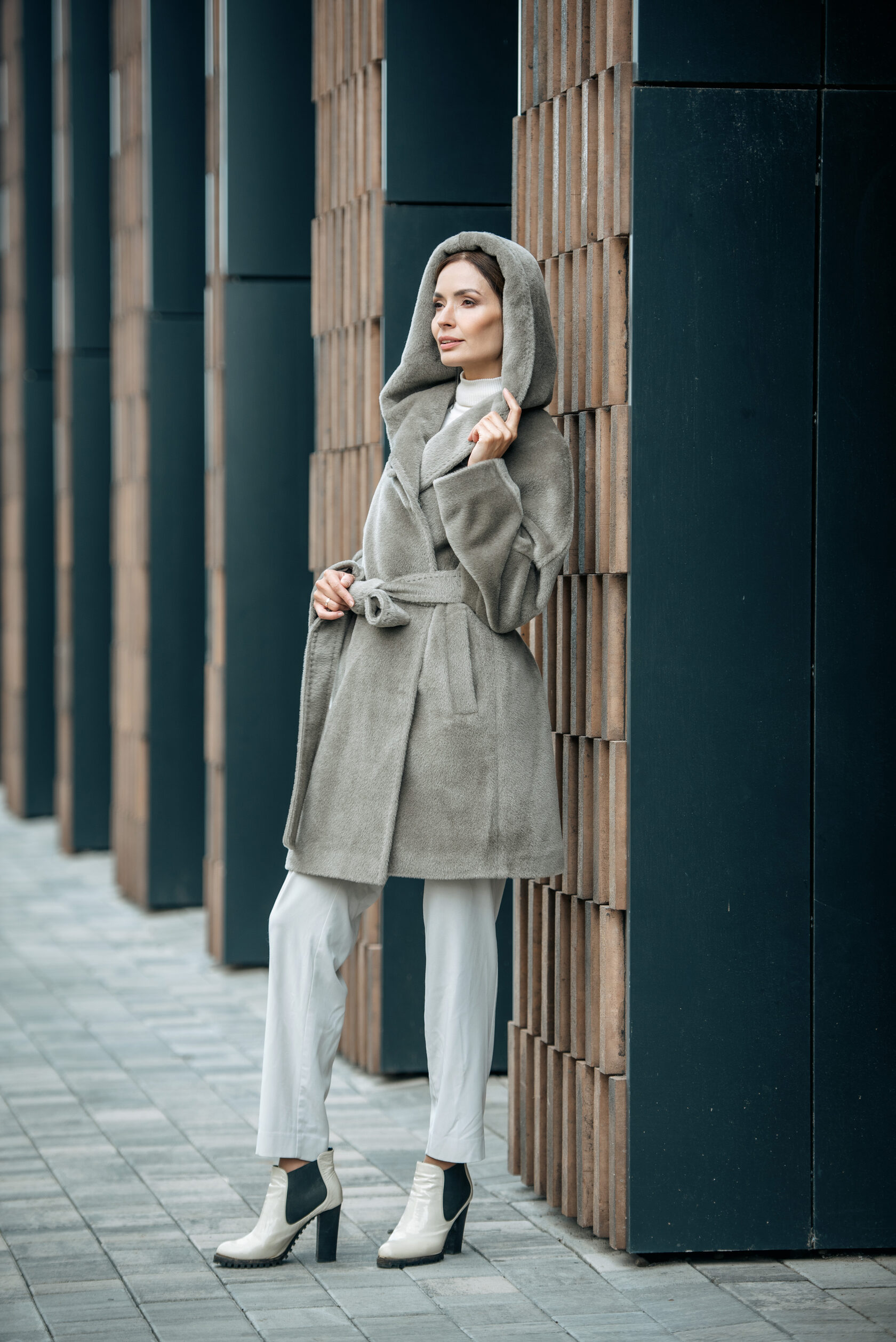 Купить полупальто прямого кроя из шерсти сури альпака с капюшоном Вы можете по адресу: г. Москва, Сущевский Вал, д. 5, стр. 1 (м. Савеловская, ТК “Савеловский-Модный”, магазин “Меха и Мода”, D-136).