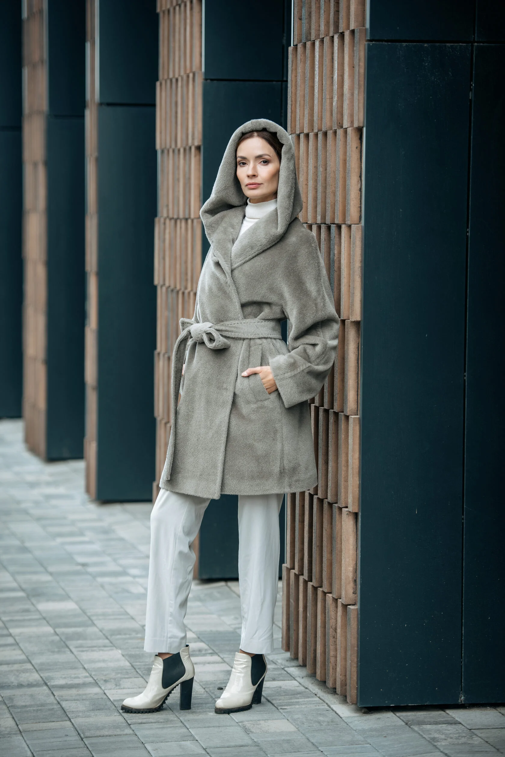 Полупальто прямого кроя из шерсти сури альпака с капюшоном