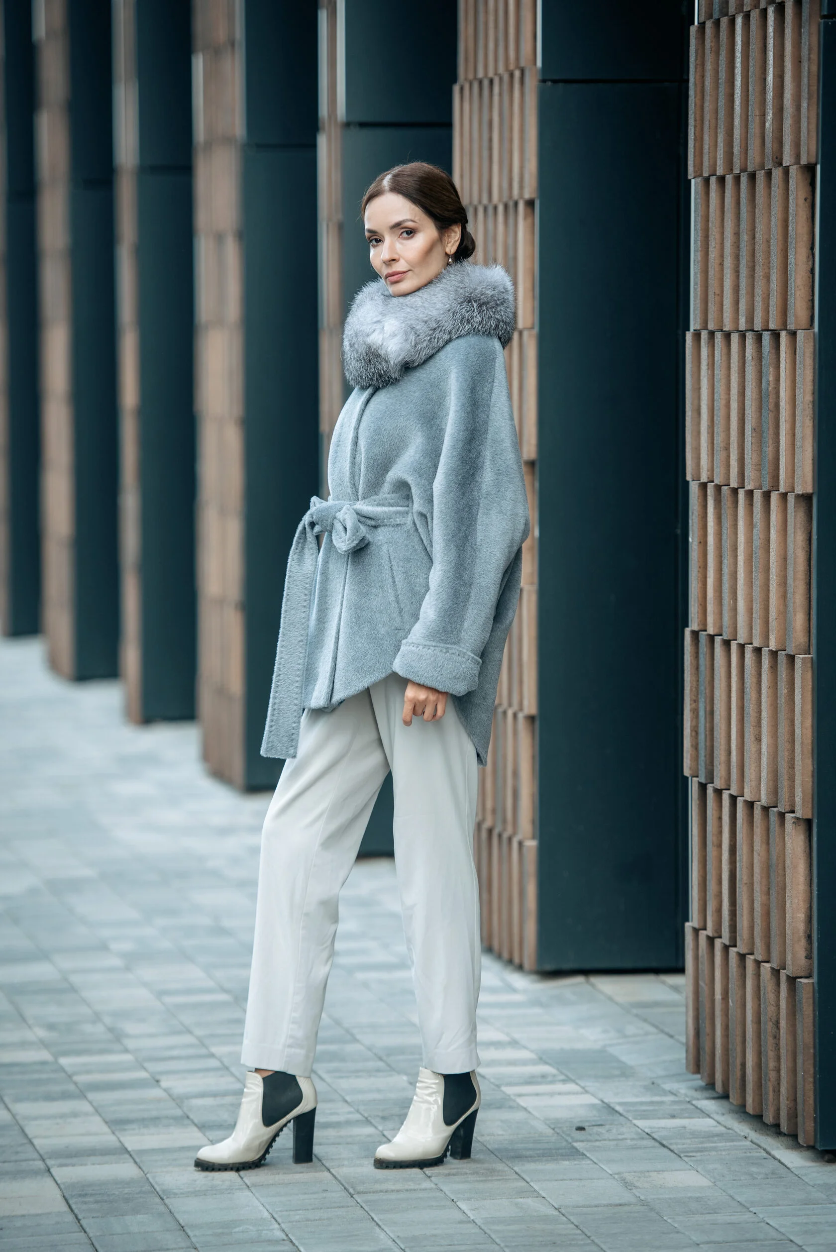 Жакет из шерсти сури альпака со съемной горжеткой фрост