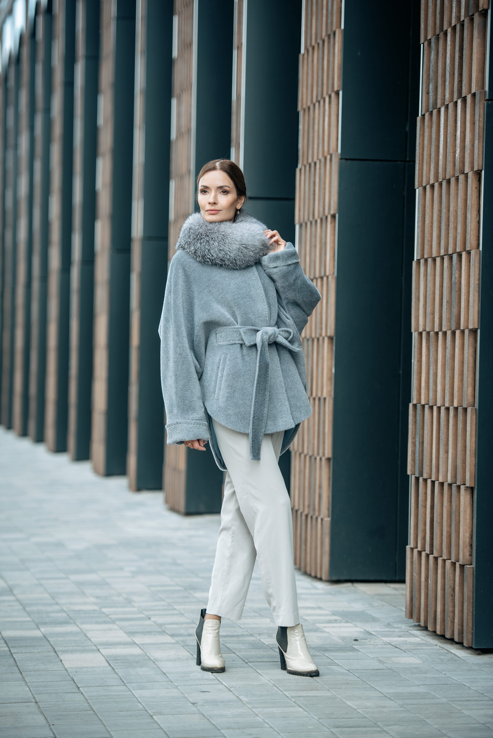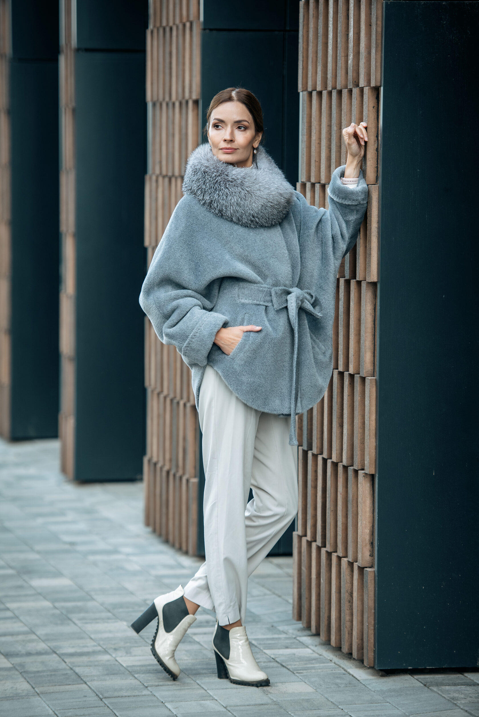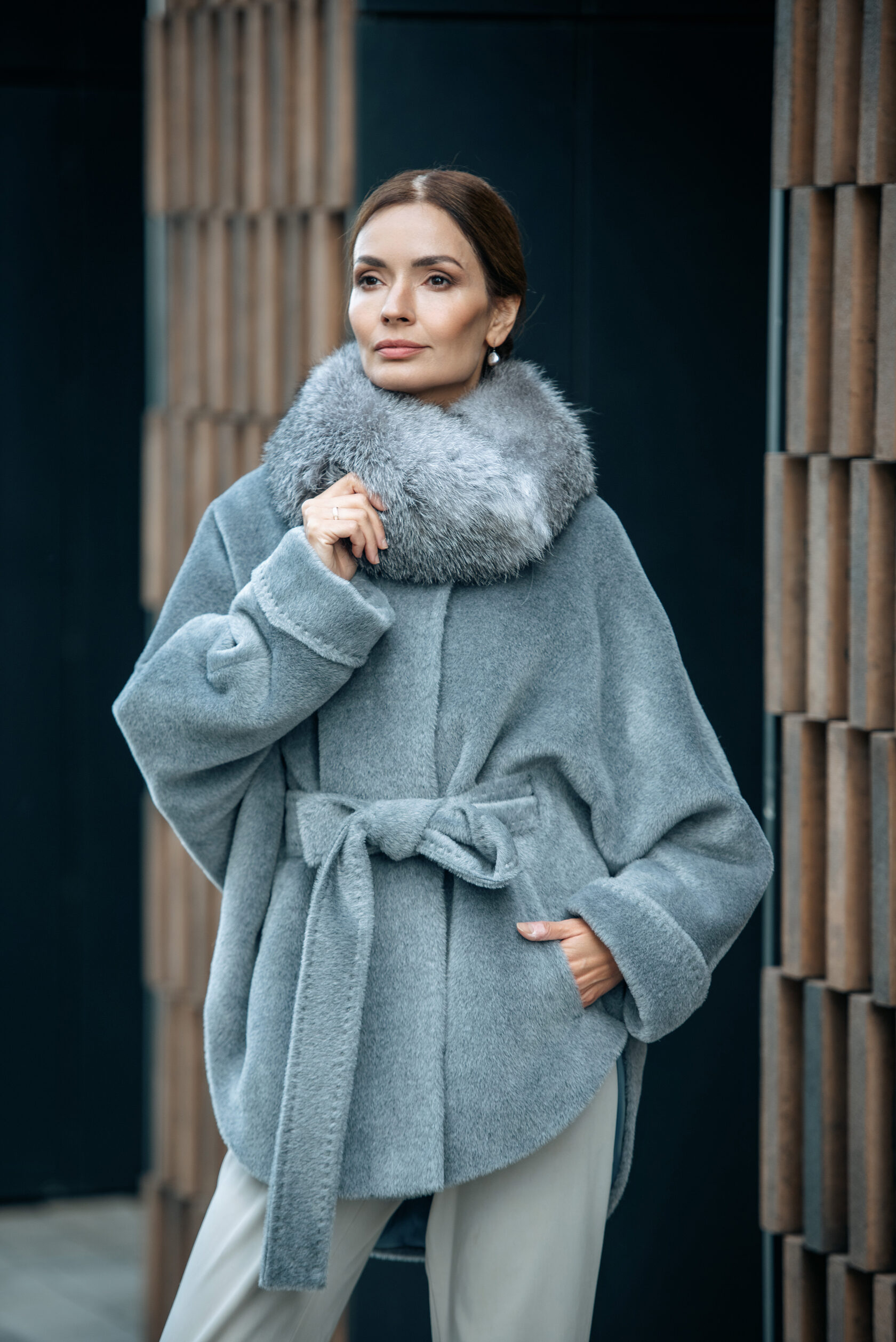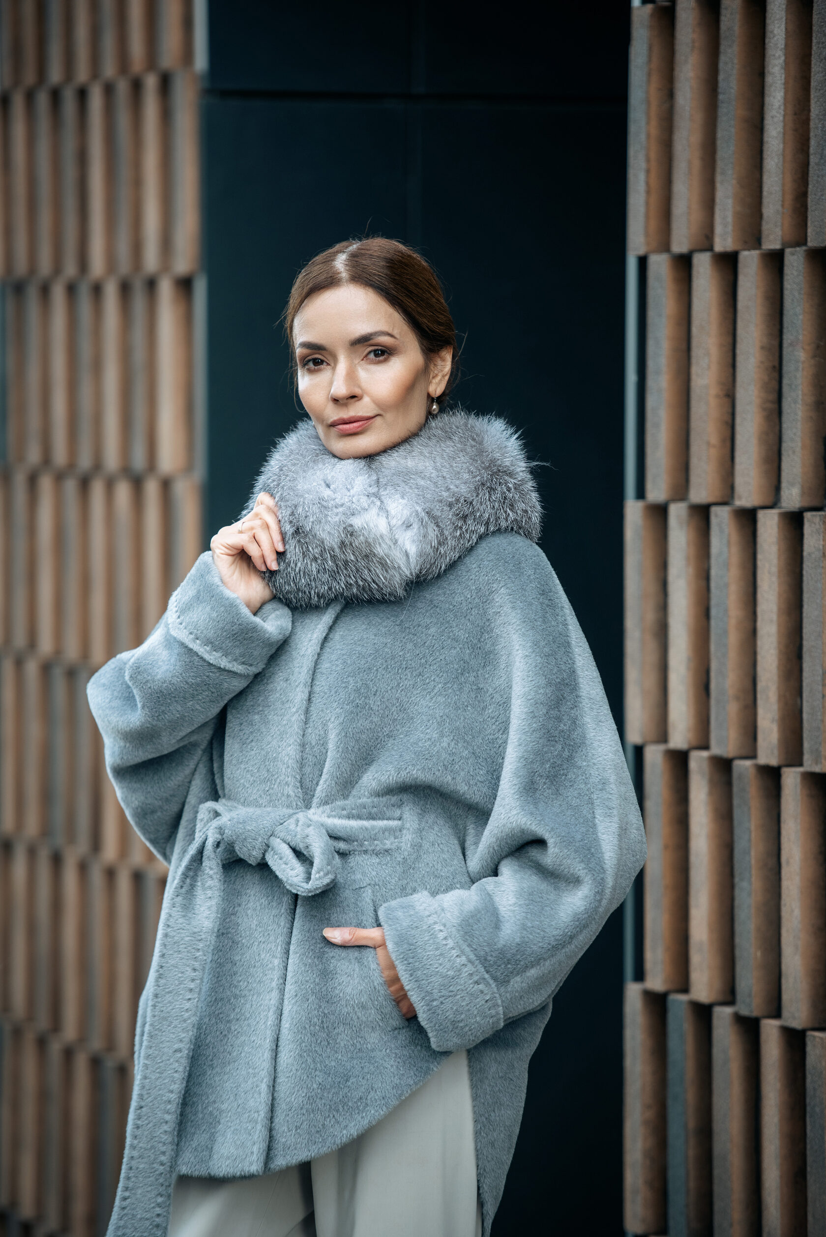 Купить жакет из шерсти сури альпака со съемной горжеткой фрост Вы можете по адресу: г. Москва, Сущевский Вал, д. 5, стр. 1 (м. Савеловская, ТК “Савеловский-Модный”, магазин “Меха и Мода”, D-136).