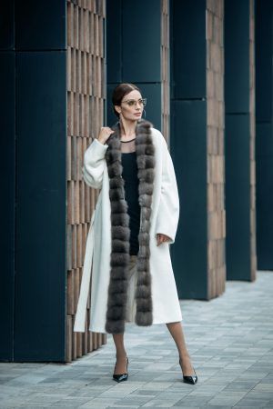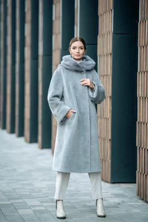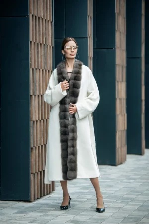 Пальто из шерсти беби сури альпака с горжеткой полярная лисица