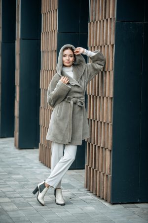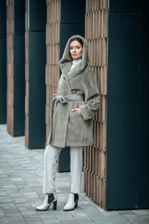 Полупальто из шерсти сури альпака с капюшоном кобра
