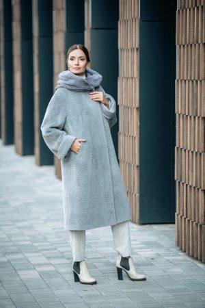 Жакет из шерсти сури альпака со съемной горжеткой фрост