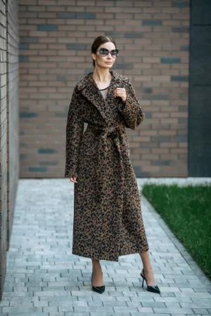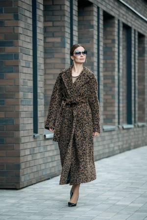 Пальто из шерсти беби сури альпака принт леопард